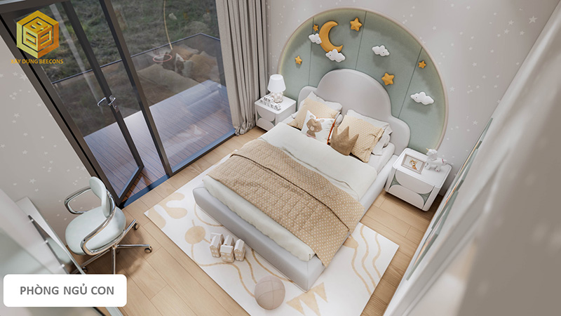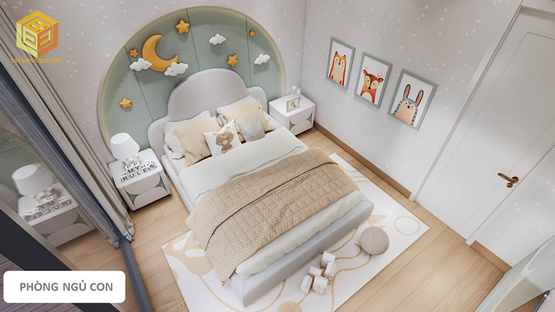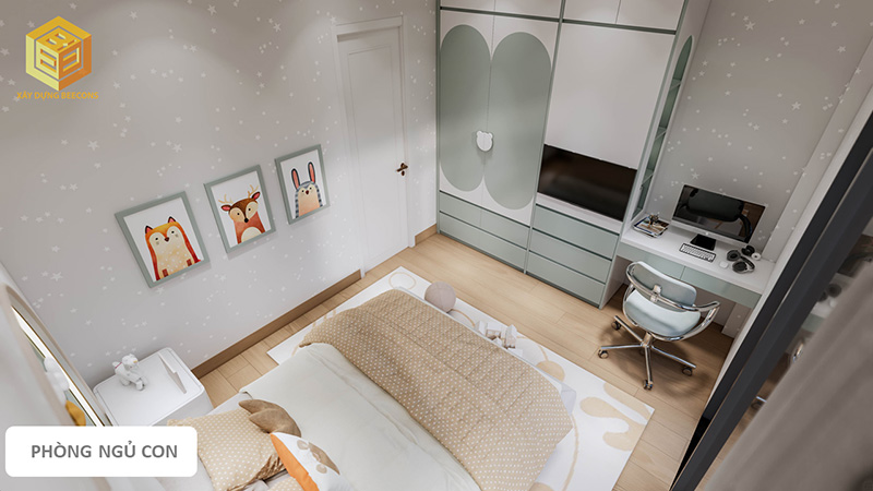 Phòng ngủ con được thiết kế sinh động với màu sắc tươi sáng, nội thất đa năng giúp tối ưu diện tích.