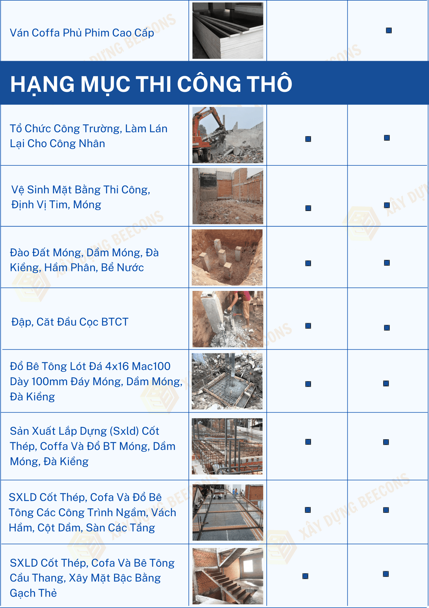 BÁO GIÁ XÂY NHÀ PHẦN THÔ